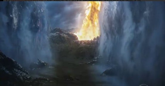 Mar se abrindo em “Os Dez Mandamentos” (Foto: Reprodução / TV Record)