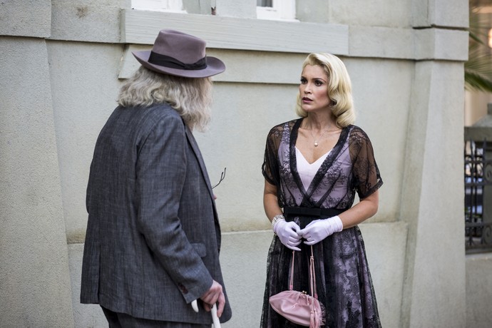 Sandra (Flavia Alessandra) é muito cara de pau, não é mesmo? Olha só a desculpa que ela vai dar após ser flagrada por Pancrácio (Marco Nanini) ao sair do ateliê de Ernesto (Eriberto Leão): “Sofro todos os dias da minha vida, se quer saber. Estou nas mãos de Ernesto, professor! Sou uma vítima de Ernesto e meu destino é a rua, quando titia descobrir tudo e expulsar-me”.