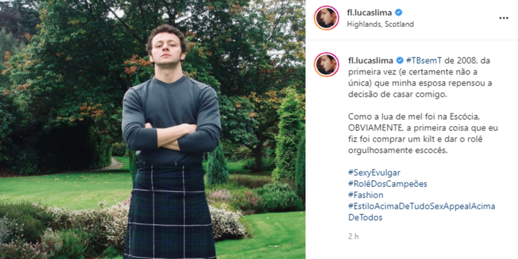 Em uma das brincadeiras, Lucas Lima surgiu usando uma famosa saia escocesa e não deixou passar a brincadeira batida ao dizer que Sandy repensaria no casamento com ele, após vê-lo vestido daquela forma.