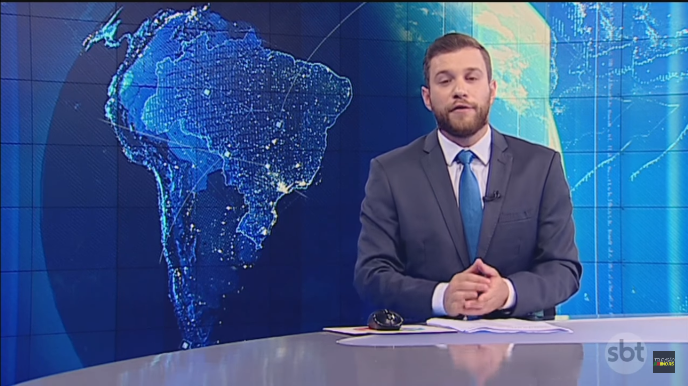 O âncora Cassius Zeilmann no programa “SBT Notícias” (Foto: Reprodução)