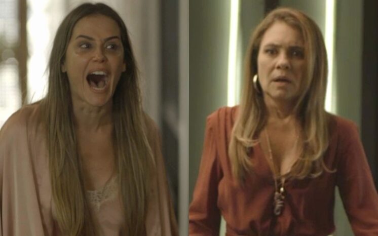 “Você ia me matar, sua louca?”, questiona Laureta, que defende a amiga diante de Ícaro: “Karola estava surtada, não tá vendo o estado dela? Pode soltar”. “A culpa é sua. Eu sempre confiei em você. Você destruiu minha vida, merece morrer, eu já tô morta, já tô morta”, lamenta Karola.
