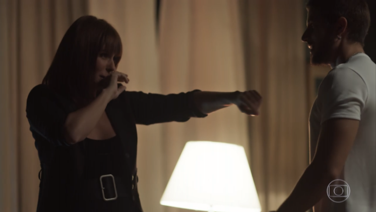 “Ninguém é bom assim pra ninguém… Qual é a sua, Silvia? Quem é você, afinal, hein? Que que você quer de mim? De verdade? Sem essa de só conversar, quem que empresta um apartamento desses prum desconhecido?”, questiona, sério.