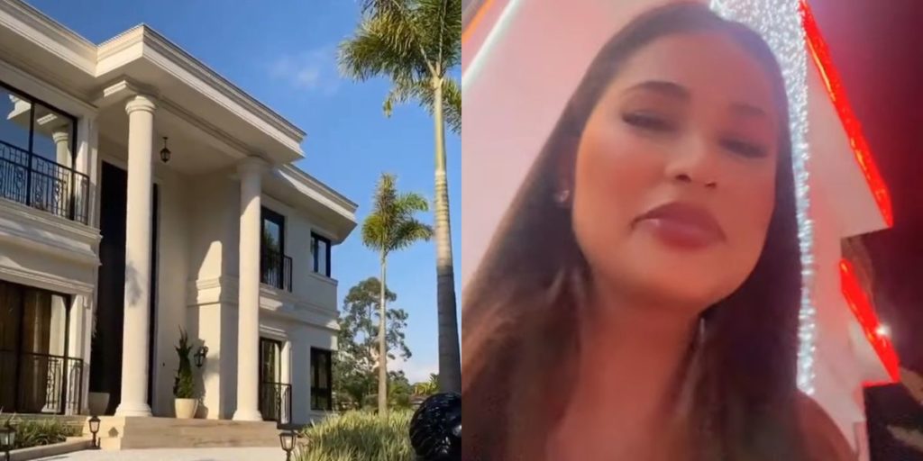 A mansão fica localizada em meio à natureza dentro de um condomínio de luxo em Alphaville. A casa tem uma bela fachada, com uma porta de seis metros, cômodos gigantescos, salas de estar e jantar, lustres belíssimos, espelhos com folha de ouro, elevador e muito mais.