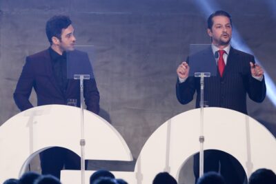 Celebridades02/12/2016 15:18 | 1 min de leituraMarcelo Serrado e Marcos Veras se beijam no palco de evento no Rio