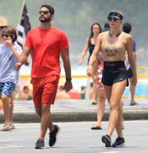 Grazi Massafera e Patrick Bulus caminhando na orla da praia no Rio de Janeiro (Foto: J C Pereira/ Agnews)