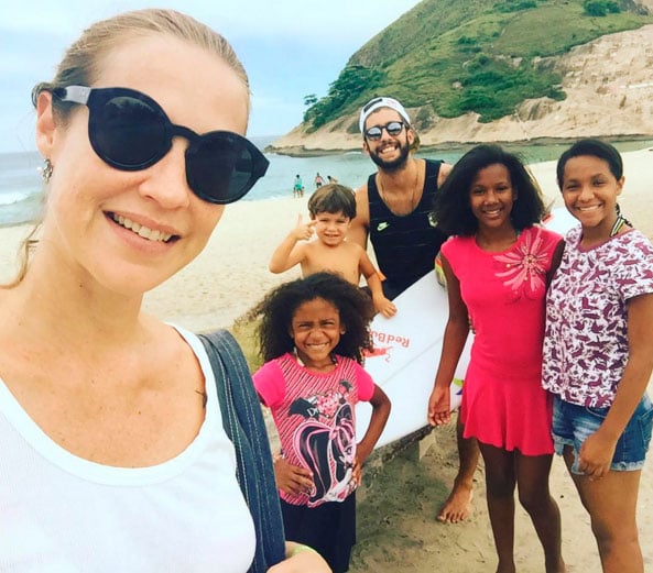 “Praia com o papai. O primeiro dia de surfe do Bolota, meu, da Juju, da Lulu e da Gigi. Inesquecível! Obrigada, amor da minha vida”, escreveu ela.