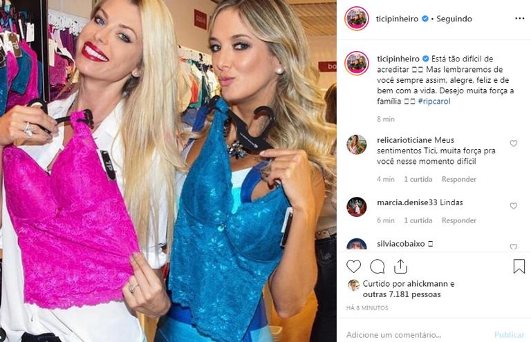 Na foto publicada por el em seu Instagram, as duas apareciam segurando looks sexys e felizes, sorrindo para as câmeras. Comovida, a esposa de César Tralli, desejou muito força à família e amigos da modelo.