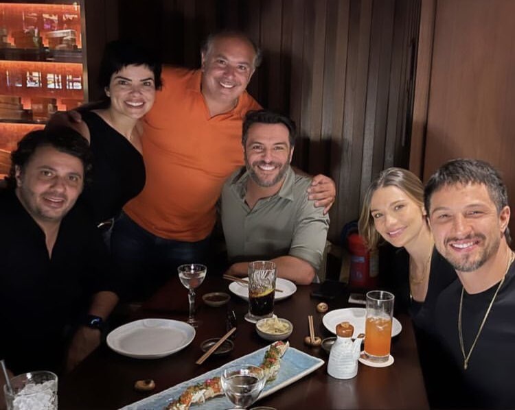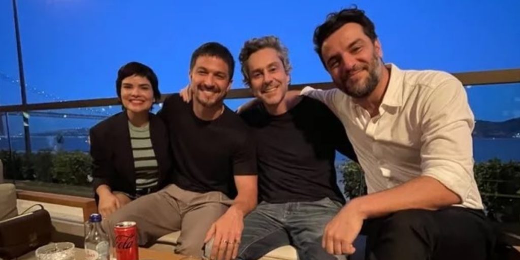 Elenco de Travessia reunido em restaurante (Foto: Reprodução)