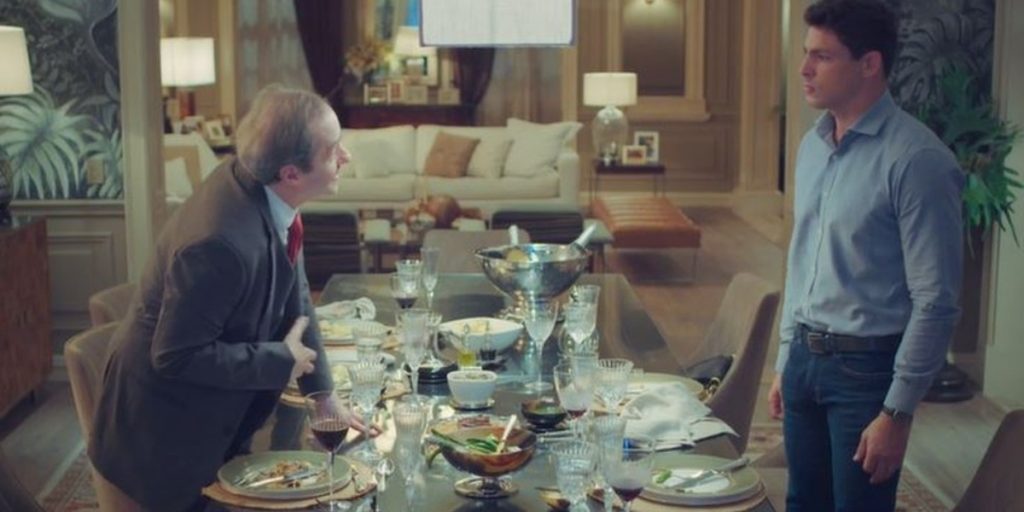 “O senhor querendo tanto um herdeiro, e, de um modo ou de outro isso se encaminhou, não é mesmo? Eu estou falando desse filho que você descobriu agora, Renato. Sim, porque, sendo filho seu, ele é, de certo modo, da família”, soltará o invejoso.