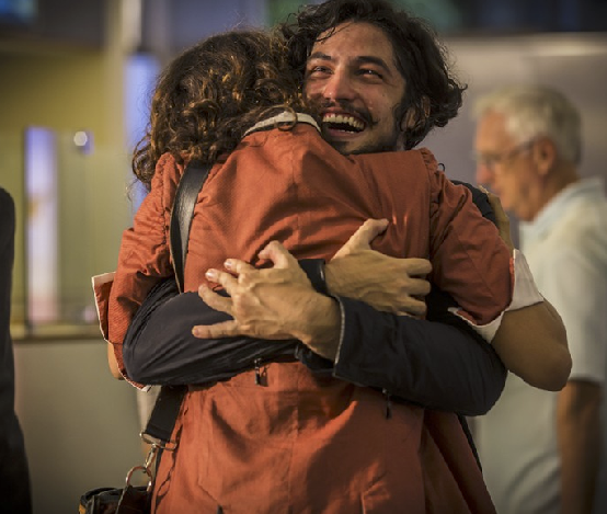 Miguel abraça Tereza na volta ao Brasil (Foto: Inácio Moraes/ Gshow)