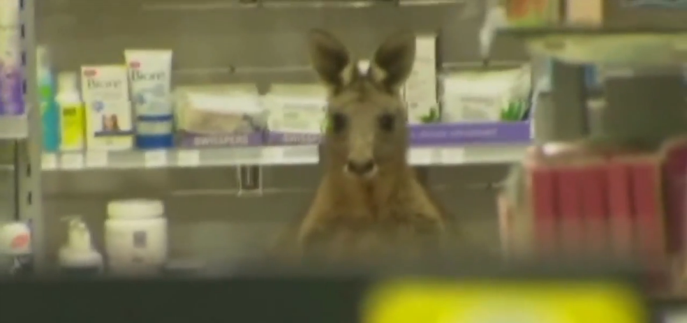 Um canguru entrou no aeroporto de Melbourne , na Austrália e procurou abrigo dentro de uma farmácia. A polícia local isolou a parte do aeroporto, para que veterinários pudessem sedar e capturar o canguru, que estava ferido. O animal havia sido atropelado minutos antes, quando se dirigia ao aeroporto.