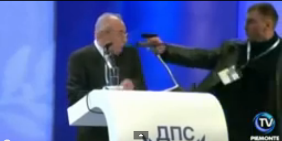 Uma situação inusitada aconteceu com um político búlgaro durante seu discurso. No meio de seu depoimento, o político é surpreeendido por um outro homem que aponta um revólver para sua cabeça, para sorte do político, a arma falhou. Seguranças do local deteram o criminoso.