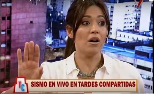 Gisela Campos, que apresenta o programa “Tardes Compartidas”, começa a relatar o que está acontecendo enquanto tenta manter a calma, mas está visivelmente preocupada com o que está acontecendo. Ao perceber que se tratava de algo sério e que os lustres do estúdio estavam balançando, finalmente diz à convidada, uma atriz de standup comedy e ao apresentador Rodi Gravina para saírem dali.